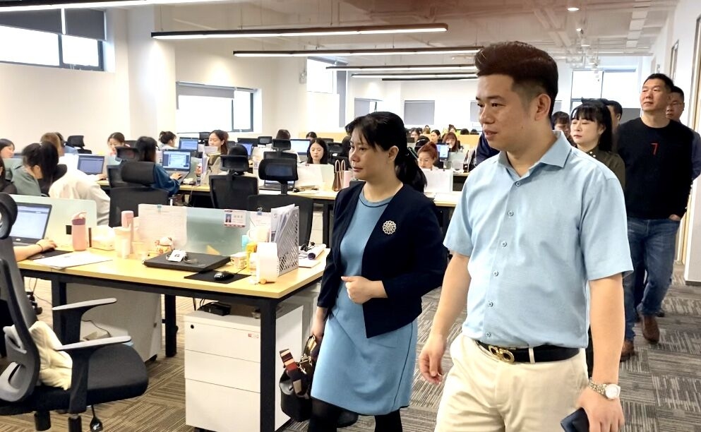 在考察研讨过程中,升职猫董事长带领各领导参观了各个楼层的办公环境,介绍了公司的发展新战略,分析了公司创新创效的形势以及发展愿景: